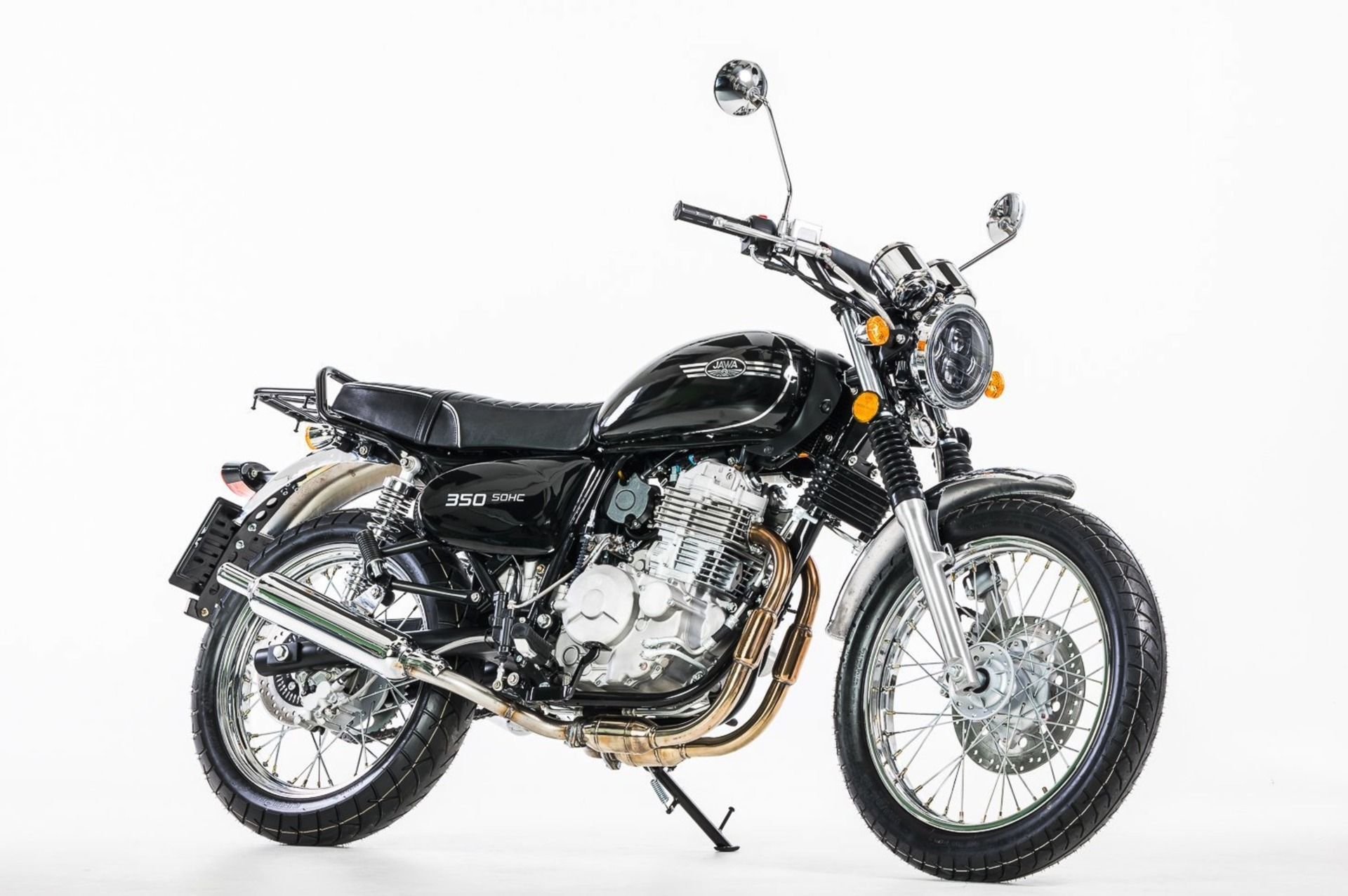 JAWA 350 OHC Sport – Po úspěšném uvedení modelu JAWA 350 OHC Scrambler na trh bylo jednoznačné pokračovat v tomto stylu motocyklu i nadále. Přechod na novou homologační normu EURO V si vyžádal drobné technické změny, ale z hlediska celkového pojetí motocyklu se jednalo skutečně o minimu změn. Ono minimum bez pochyb přispívá ke zlepšení jízdních vlastností tohoto oblíbeného modelu. Jedná se především o úpravu zadní vidlice, zadní kotoučové brzdy, nově použitého olejového chladiče a led předního světla. Shodně se svým předchůdcem má i design modelu JAWA 350 OHC Sport navázat na bohaté úspěchy motocyklů značky JAWA v motocyklových soutěžích. Dominantou a tradičním prvkem je klasický kapkovitý tvar nádrže. Po technické stránce je tento model identický s modelem JAWA 350 OHC.